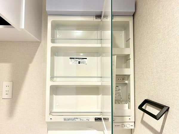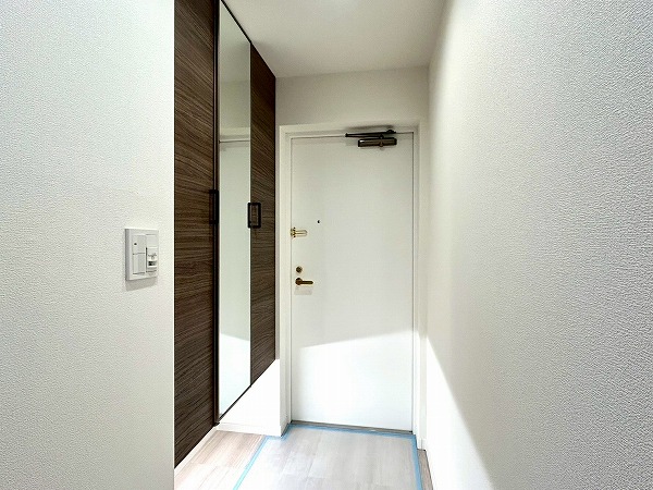 玄関には収納力のあるシューズインクローゼットがあります。靴をたくさん置けるのはもちろん、日用品なども収納できそうですね。閉めると扉部分が姿見となっており、外出の際の身支度もバッチリ行えそう✧