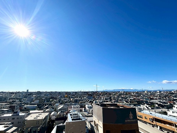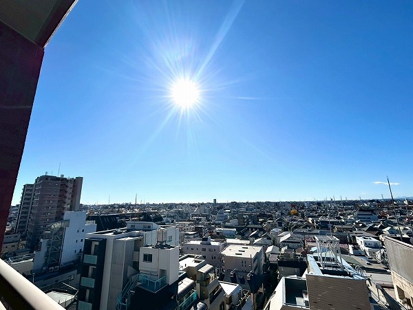 バルコニーからは西荻の街が一望できます。南側は高い建物が少なく、9階とは思えない程かなり開けた景色が見えますね♪晴れた日にはうっすらと富士山が見えますよ!