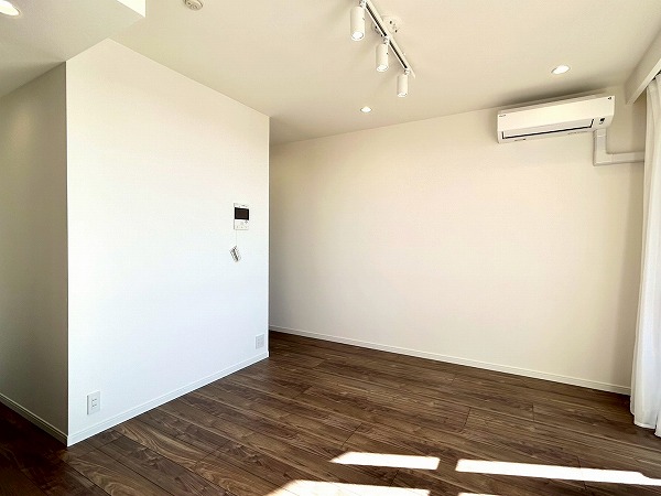 約10.5帖のリビングダイニングキッチンは、主要なテーブルやソファーを置けば心地の良い空間になりそう。シンプルな内装なので幅広いインテリアコーディネイトができそう♪2025年11月にリフォーム済みでまるで新築の様に綺麗でした✧