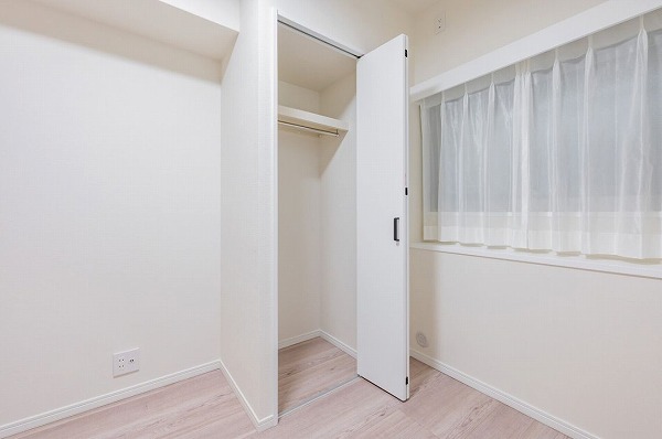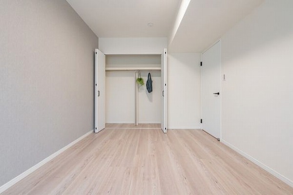 リビングのお隣には、おおよそ6.7帖の洋室がありました。大容量サイズのクローゼットには、季節もののコートやかさばりやすいダウンジャケットなども綺麗に保管できます。