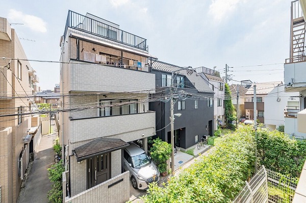 東向きに広がるバルコニーは陽当たりが良く、心地良い風が吹き込んでいました。住宅街らしい落ち着いた雰囲気の眺望ですね。