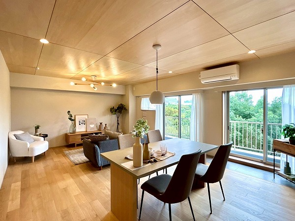 木の温もりと柔らかな光が包むナチュラルデザインの2LDK。角住戸の明るさで、ご家族との時間も自分の時間も心地よくお過ごしいただけます☀