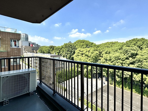 バルコニーから望むのは、「高輪皇族邸」の緑。都会の中でありながら静謐な自然を感じられる贅沢な景色が、暮らしの格をそっと上げてくれます❀