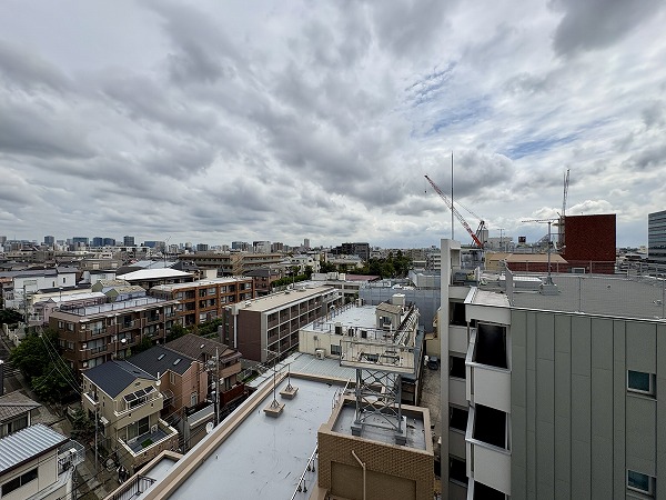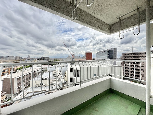南東向きに位置するバルコニーは、陽当たり&風通しが良く、洗濯物をたくさん干すことができます。高層階につき見晴らしが良く、開放感溢れる眺望が広がっていました。