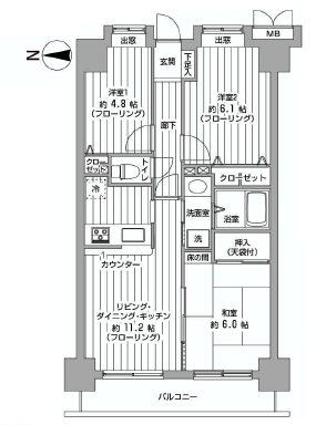 ●専有 60.18㎡ (バルコニー:7.96㎡)