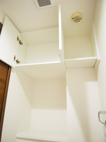 吊戸棚があり、トイレ用品をしっかりしまえます(*^-^*)カウンター部分には、観葉植物やアロマを飾って華やかさを演出しましょう♡